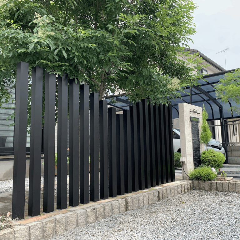 家の中にいると道路側からの視線が気になるものです。そこで効果を発揮するのが目隠しルーバーです。今回施工させていただいたのは、腐ることのないアルミ製の商品です。本物の枕木などはお洒落な雰囲気を演出できますが、数年で腐ってしまいます。決して腐らずメンテナンスもいらないアルミ製のルーバーを使用することで、そのような悩みも解消されます。目隠しルーバーの設置をお考えの方は、ぜひお気軽にお問い合わせください。お役立ていただけるアイディアやアドバイスを豊富に揃えてお待ちしております。
