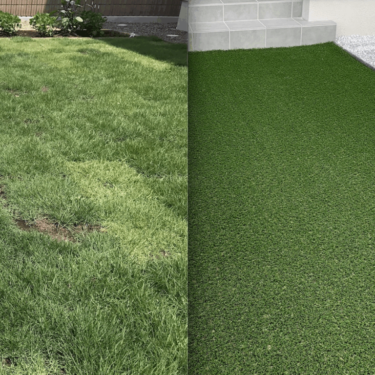 最近の人工芝はかなり改良されてきているので、見た目も手触りも質感がアップしていますが、やはり天然芝の優しい風合いにはかないません。
