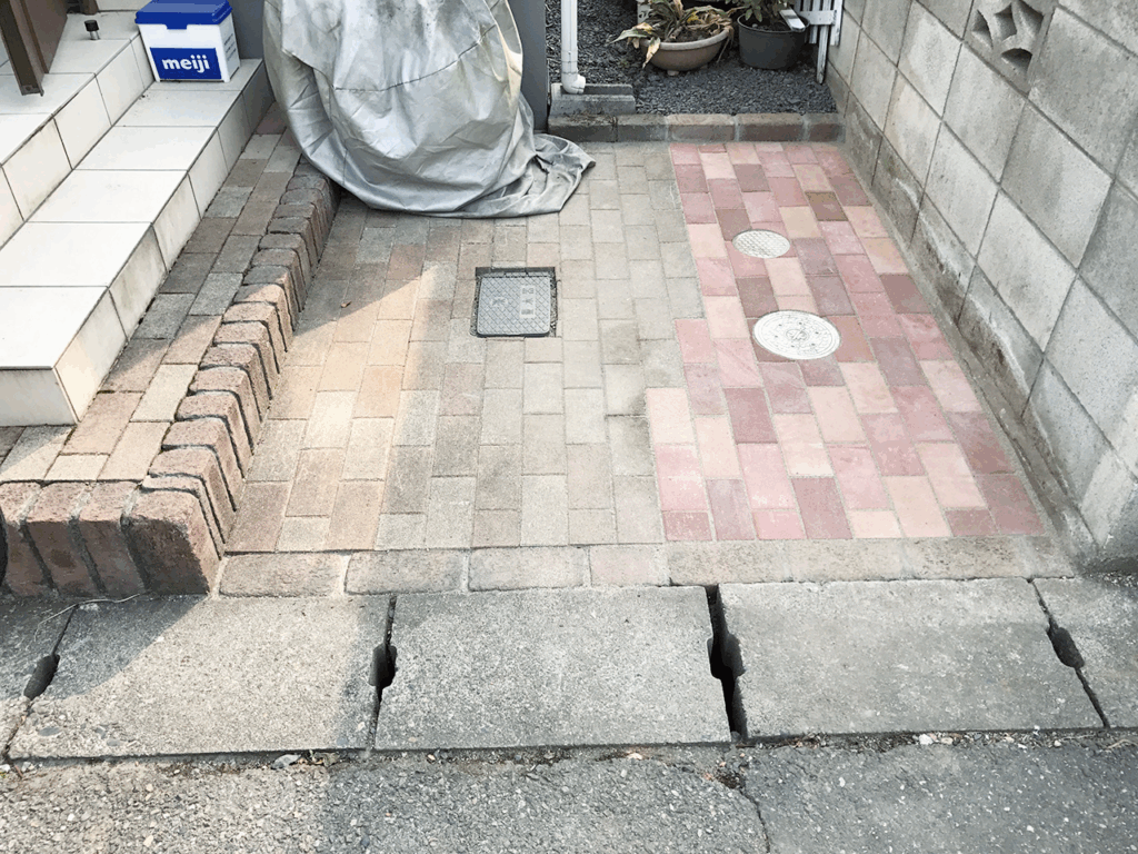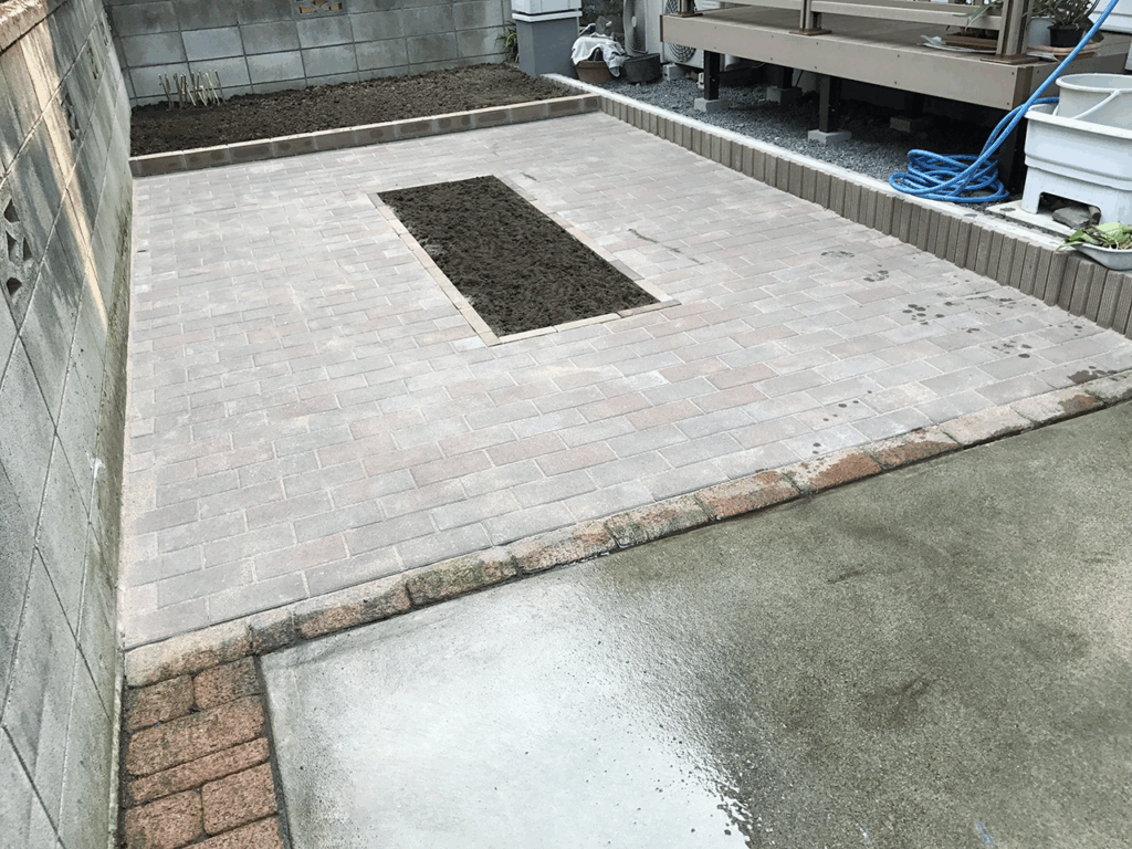 植木が植えられていたスペースにおしゃれなインターロッキングの駐車場を増設。